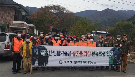 한편, 광양시는 2018년 지리산을 떠나 백운산에 서식하던 반달가슴곰이 불법엽구인 올무에 걸려 폐사한 이후 같은 불행한 사태가 반복되지 않도록 지속적인 관찰과 불법엽구 수거 활동을 실시하고 있다.
