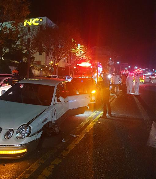사고는 NC백화점 앞 사거리에서 지난 15일 오후 6시 40분경 순천IC 방향으로 A씨가 몰던 제네시스가 중앙선을 침범해 반대편 진행 중이던 오피러스를 들이받으며 발생한 것으로 추정된다.