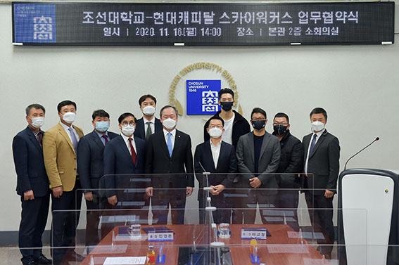 조선대학교는 16일 오후 본관 2층 소회의실에서 현대캐피탈 스카이워커스 프로배구팀과 업무협약(MOU)을 체결했다고 밝혔다.