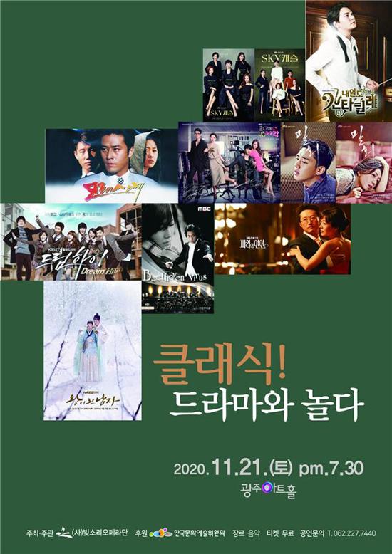 ‘SKY 캐슬’, ‘밀회’, ‘모래시계’ 등 TV드라마에 삽입된 클래식 명곡을 성악가의 목소리로 들을 수 있는 무대가 광주에서 펼쳐진다.