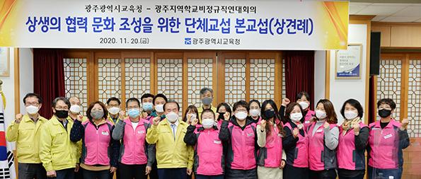 광주시교육청은 지난 20일 별관 중회의실에서 광주지역학교비정규직연대회의(이하 연대회의)와 단체교섭 본교섭(상견례)을 실시했다고 23일 밝혔다.