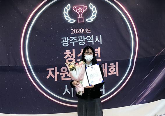 상일여고 2학년 임조은 학생이 ‘2020년도 광주광역시 청소년자원봉사대회’ 개인 부문에서 여성가족부장관상을 수상했다.