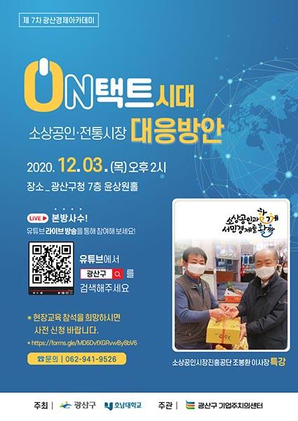 광주 광산구(구청장 김삼호)와 광산구기업주치의센터가, 다음달 3일 구청에 조봉환 소상공인시장진흥공단 이사장을 초청해, ‘온택트 시대 소상공인·전통시장 대응방안’을 주제로 광산경제아카데미를 개최한다.