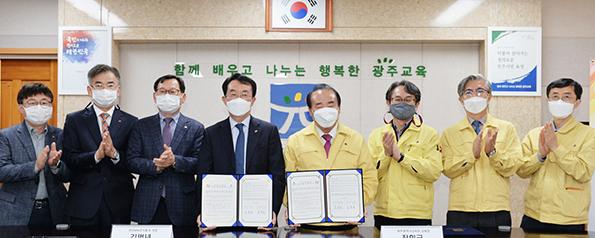 광주시교육청이 24일 교육감실에서 한전KPS와 고졸 취업 및 지역 에너지 분야 인재 양성 활성화 지원을 위해 ‘지역인재 양성 및 후원을 위한 업무협력협약’을 체결했다.