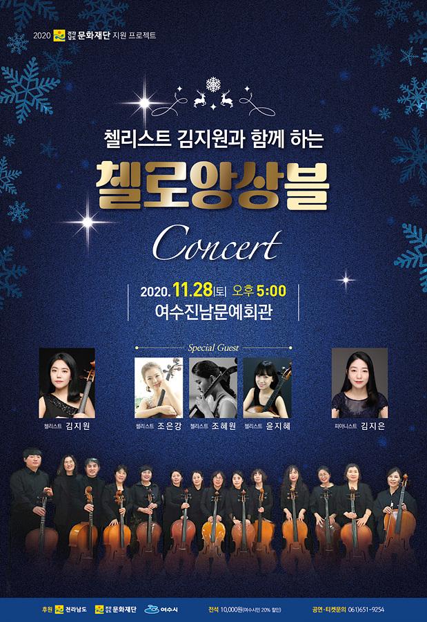 2019 프랑스 파리 비르투오조 국제음악 콩쿨에서 종합1위를 석권한 첼리스트 김지원과 함께하는 첼로앙상블 공연이 오는 28일 여수진남문예회관을 찾아온다.