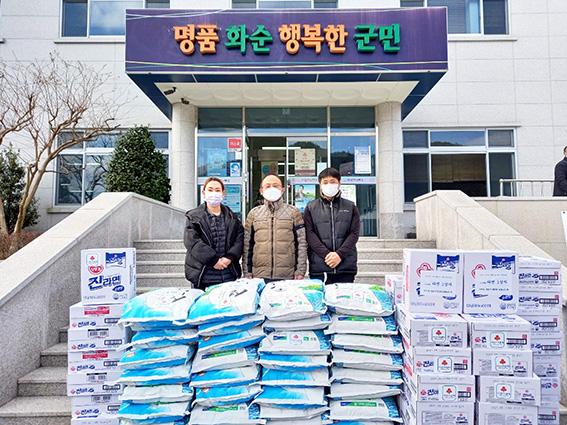 9일 화순군에 따르면 임씨의 아들 규복(42)씨가 최근 이양면 행정복지센터를 방문해 쌀(20㎏ 들이) 40포와 라면 50박스를 전달했다.