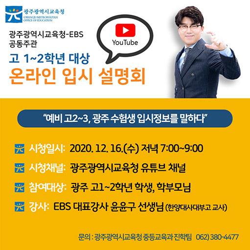 별도의 참여 신청은 받지 않고, 오는 16일 오후 7시 광주시교육청 유튜브 채널에 접속하면 입시설명회에 참여할 수 있다.