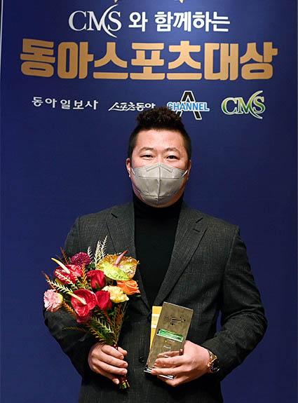 프로야구 올해의 선수상을 수상한 최형우(KIA)가 15일 서울 중구 서울신라호텔 영빈관에서 열린 ‘CMS와 함께하는 2020 동아스포츠대상' 시상식에서 기념촬영을 하고 있다. (사진=스포츠동아 제공)