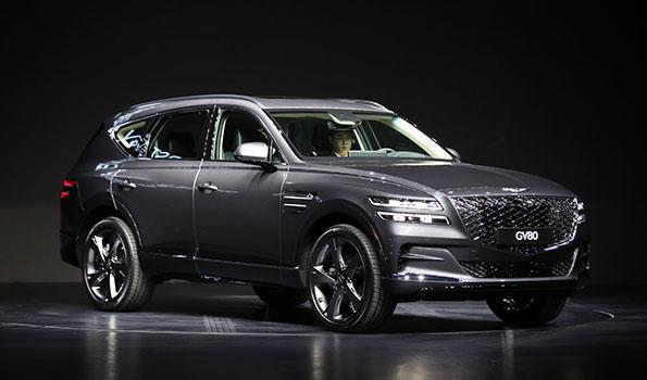 제네시스 브랜드가 15일 경기 고양시 킨텍스에서 첫 번째 스포츠유틸리티차량(SUV) 'GV80'을 선보이고 있다. 2020.01.15.