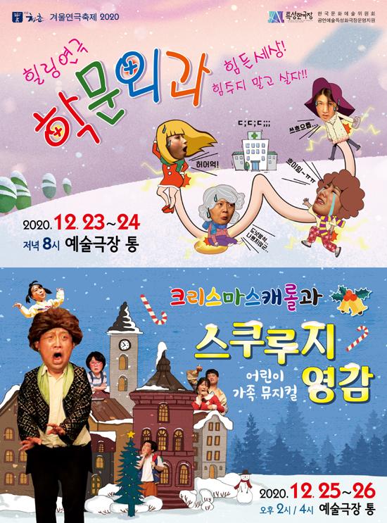 극단 청춘은 힐링 연극 ‘학문외과’와 어린이 뮤지컬 ‘크리스마스 캐롤과 스쿠루지 영감’을 23일부터 26일까지 예술극장 통에서 공연한다고 20일 밝혔다.