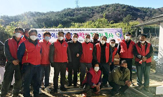 남순천라이온스클럽 회원 10여 명은 도배·장판 및 창문 교체, 지붕 보수, 계단 및 화장실 문 설치 등 열악한 주거환경을 개선시켰으며, 이 외에도 코로나19 확산 방지에 동참하고자 해당 마을 전체 방역·살균 활동도 펼쳤다.