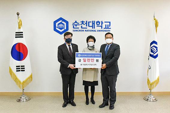 순천대학교는 대학에서 30년간 재직한 고(故) 이용재 서기관의 유족 김효순 여사와 아들 이정원씨가 ‘이용재 장학금’을 위해 올해도 발전기금 천만원을 기탁했다고 21일 밝혔다.
