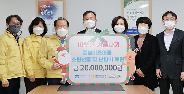 광주시교육청이 NH농협 광주영업 본부로부터 연말 돌봄 세대 지원을 위한 ‘따뜻한 겨울나기-난방비 지원비’ 후원금 2000만 원을 21일 전달받았다.