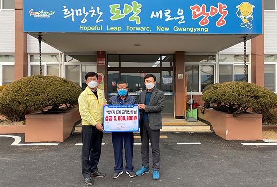 광양시 봉강면은 박인기 광양덕례초등학교 前교장이 (재)광양시사랑나눔복지재단을 통해 500만 원을 기탁했다고 27일 밝혔다.