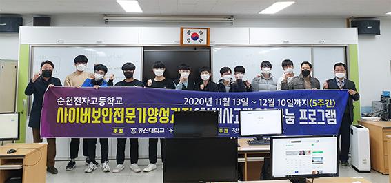 순천전자고에서는 동신대 융합정보보안학과의 김종민 교수와 학과동아리 ‘호키스(HawkIS)’ 소속 학생 5명의 협조를 받아 해킹보안과 3학년 학생들 15명을 대상으로 사이버침해사고대응 전문가 과정을 운영했다.
