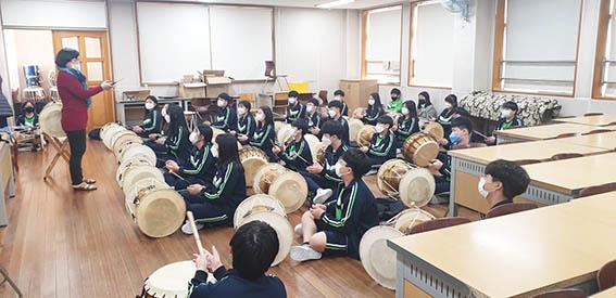 한편 지산중은 지난 7년 동안 광주 북구청의 지원을 받아 ‘용전들노래와 함께하는 전통문화예술교육’을 학교 특색사업으로 실시하고 있다. 자유학년제 교육과정과 연계해 1학년 학생을 대상으로 1학기에는 동아리 활동으로 ‘전통문화반’을, 2학기에는 예체활동으로 ‘용전들노래반’과 ‘전통놀이반’을 운영하고 있다. 올해는 코로나로 생략됐지만 매년 ‘노롬노리와 함께하는 용전들노래 공연’을 준비하면서 학생들의 우리 지역의 전통문화를 배우는 계기를 갖게 됐다.