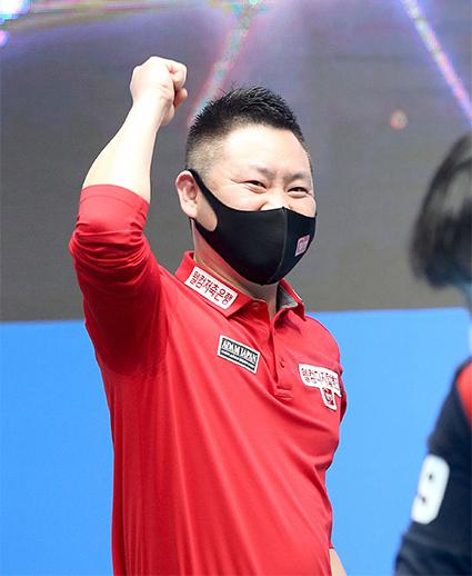 지난 4일 서울 강서구 메이필드호텔에서 열린 PBA-LPBA TOUR 제3차전 NH농협카드 챔피언십 대회 준결승전에서 결승전에 진출한 서현민이 환호하고 있다. (사진=PBA투어 제공)