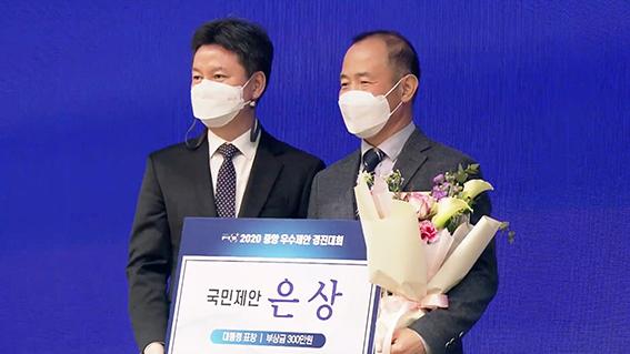 국민제안 분야에서 은상을 받은 박 단장의 제안은 국민 안전신문고 모바일 앱의 서비스 개선을 통한 국민안전 확보방안으로, 기존의 신고체계 개선을 통한 정확한 위치제공으로 신속한 위험요소 제거는 물론 행정력 낭비 방지가 주요한 기대효과이다.