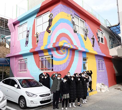 벽화를 직접 스케치한 리오 작가는 “벽화에 아이들이 주인공이라는 개념을 담는 데 주력하면서 학생들과 콜라보로 벽화를 완성했다는 데 의미를 두고 싶다”고 말했다.