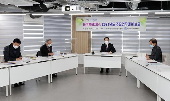 동구 동구행복재단이 코로나19 일상시대에 맞춰 주민의 행복한 삶과 직결된 다양한 신규시책 등 2021년 새해 업무보고 자리를 가졌다고 밝혔다.