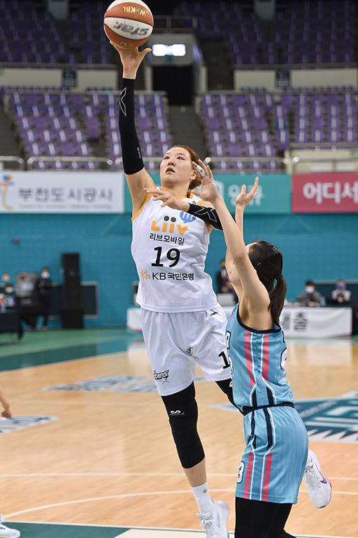 KB국민은행은 15일 부천실내체육관에서 열린 KB국민은행 Liiv M 2020~2021 여자프로농구 정규리그 원정 경기에서 부천 하나원큐를 69-67로 이겼다.