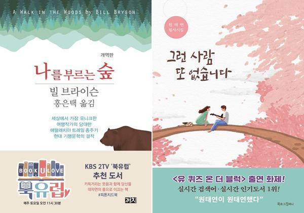 18일 교보문고에 따르면 1월 2주 차 베스트셀러 여행 분야 1위 ‘나를 부르는 숲’, 시 분야 1위 ‘그런 사람 또 없습니다’, 요리 분야 1위 ‘요리는 감이여’ 등은 모두 최근 방영 중인 TV 예능 프로그램에 직·간접적으로 노출된 책들이다.