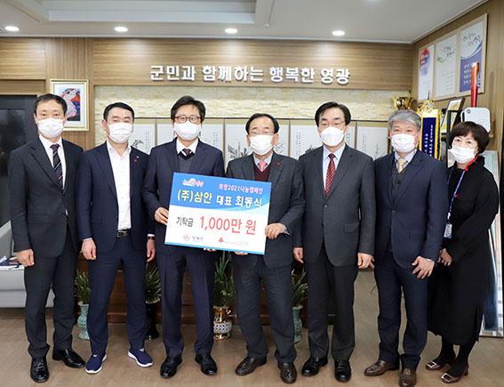 ㈜삼안은 지난 15일 어려운 이웃에게 희망을 전달하기 위해 영광군에 희망2021 나눔캠페인 성금 1000만 원을 기탁했다.