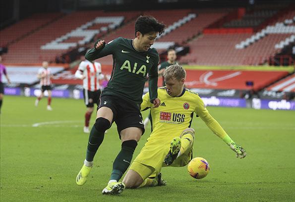 토트넘의 손흥민이 16일(현지시간) 영국 셰필드의 브라몰 레인에서 열린 2020-21 잉글리시 프리미어리그(EPL) 19라운드 셰필드 유나이티드와의 경기에 선발 출전해 공격하고 있다. 손흥민은 전반 5분 코너킥으로 세르주 오리에의 선제골을 도와 EPL 통산 100번째 공격 포인트를 기록했고 토트넘은 3-1로 승리했다. 2021.01.18.