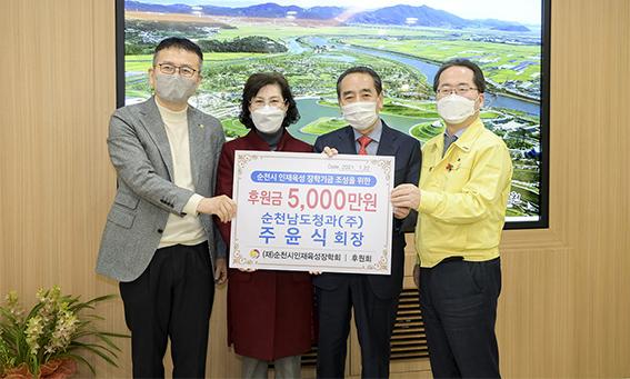 허석 순천시장은 “코로나19 판데믹 상황에서도 순천시 인재육성을 위해 도움을 주신 주윤식 前의원께 감사드린다”며 “이런 뜻깊은 후원을 통해 교육 도시의 명성을 높일 수 있는 계기로 만들겠다”고 말했다.