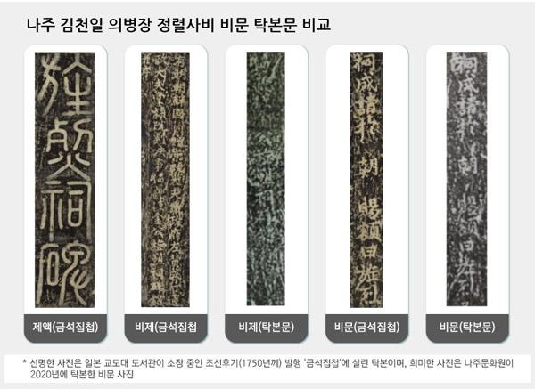 ‘금석집첩(金石集帖)’이라는 책에 실린 탁본첩은 나주문화원이 나주 지역의 금석문 탁본 조사를 통해 국역 해설집을 발간하는 과정에서 지난해 일본 현지에서 존재를 확인하고 사진 자료를 확보했다.