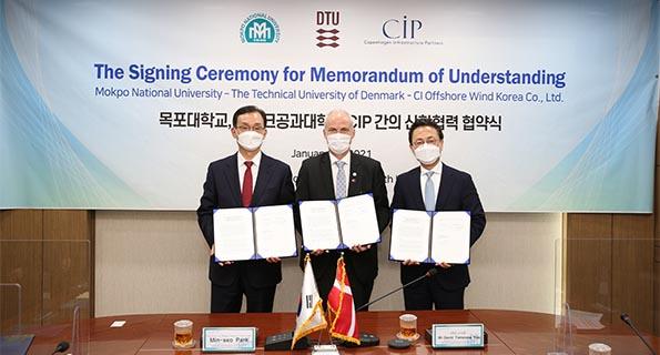 국립목포대학교는 유럽 3대 재생에너지 개발·투자 전문기업인 CIP(Copenhagen Infrastructure Partners), 덴마크 공과대학교와 해상풍력 전문인재 양성을 위한 산학협력 업무협약(MOU)을 체결했다고 27일 밝혔다.