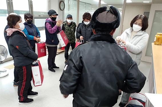방한용품과 음식은 지난 연말 입주자대표회가 진행한 '천원의 행복' 모금에 참여한 주민 성금 112만3000원으로 마련됐다.