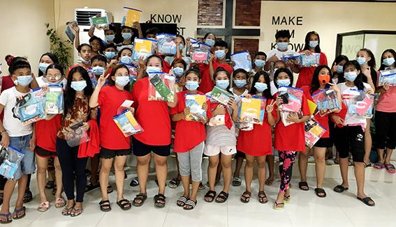 필리핀 빠야따스 지역 학생들이 강진군 청람중학교 학생들로부터 손편지와 기부물품을 받은 뒤 기념사진을 찍고 있는 모습. (사진= 전남도교육청 제공) 2021.02.01.