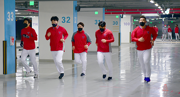 1일 오전 광주 북구 광주-기아챔피언스필드 지하 주차장에서 프로야구 KIA 타이거즈가 2021시즌 가을야구 진출을 목표로 30년만에 '국내 겨울 담금질'을 하고 있다. KIA는 지난 1991년 제주도에서 동계훈련을 소화했었다. 2021.02.01hgryu77