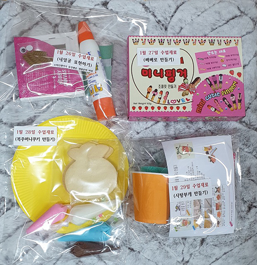 ‘방학이다! 도서관 가자!’는 초등학생 1~6학년을 대상으로 1월26일~2월4일 총 2주 동안 운영되고, ▲리딩푸드놀이 ▲영어그림책놀이 ▲코로나 탈출 전래놀이 ▲자신감UP! 스피치 놀이 등 총 4개 강좌로 구성됐다. 프로그램 운영을 위해 제공한 꾸러미와 다양한 체험활동을 통해 방학 중 집 안에 갇힌 학생들을 위로하고 코로나 블루 극복에 도움이 될 것으로 보인다.