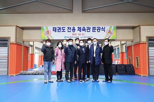 2일 첨단고에 따르면 이날 행사는 광주시교육청 체육예술융합교육과, 시설지원단 관계자, 첨단고 학교장·교감·행정실장·태권도부 교사·학생·학교운영위원장 등 최소 인원만 참석한 상태에서 방역수칙을 철저히 준수하며 진행됐다.