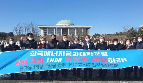 한국에너지공과대학(한전공대) 설립 광주·전남 범시도민지원위원회는 4일 국회를 방문해 '한전공대 특별법'이 2월 임시국회 회기 내에 반드시 제정돼야 한다고 촉구했다.