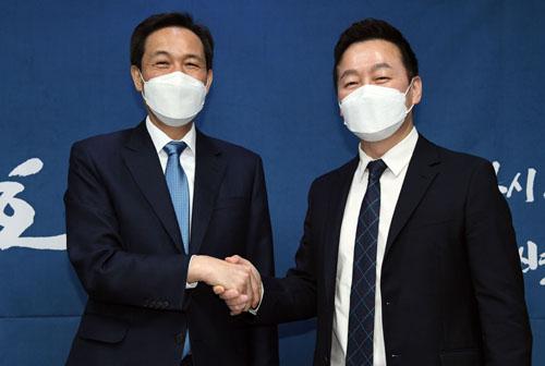 4·7 서울시장 보궐선거 출마를 선언한 더불어민주당 우상호 의원과 열린민주당 정봉주 전 의원은 7일 통합을 전제로 한 후보 단일화에 합의했다.