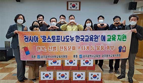 광주서부교육지원청이 관내 기관 및 교직원들이 기부한 각종 물품들을 모아 러시아 ‘로스토프나도누 한국교육원’에 전달한다고 7일 밝혔다.