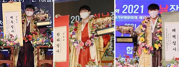 영암군은 영암군민속씨름단이 지난 10일부터 15일까지 경남 합천에서 열린 '2021 설날장사씨름대회'에서 백두장사와 한라장사, 태백장사 등 3체급 장사에 등극하는 쾌거를 거뒀다고 16일 밝혔다.