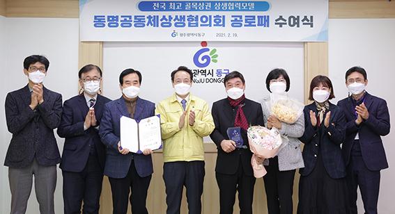 동구(청장 임택)는 주민 스스로 마을 문제를 해결하기 위해 상생협의회를 꾸리고 동명동 상생발전과 골목경제 활성화에 앞장서 온 동명공동체상생협의회(회장 최복현·이하 협의회)에 공로패를 수여했다고 밝혔다.
