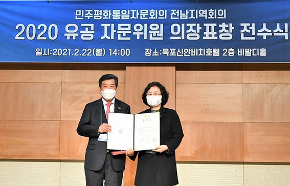 함평군의회 윤앵랑 부의장이 22일 민주평화통일자문회의 의장 표창을 수상했다.