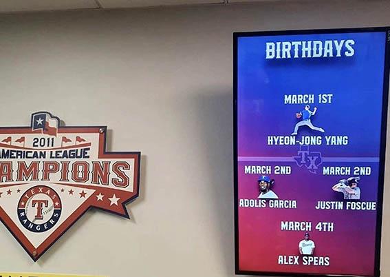 텍사스 레인저스 클럽하우스에 설치된 모니터에 양현종의 생일이 공지돼 있다. (사진=양현종 인스타그램 캡처)