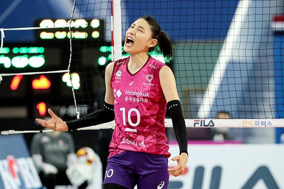 19일 오후 인천 계양체육관에서 열린 2020-2021 도드람 V-리그 흥국생명 핑크스파이더스와 KGC인삼공사의 경기, 흥국생명 김연경이 아쉬워하고 있다. 2021.02.19.