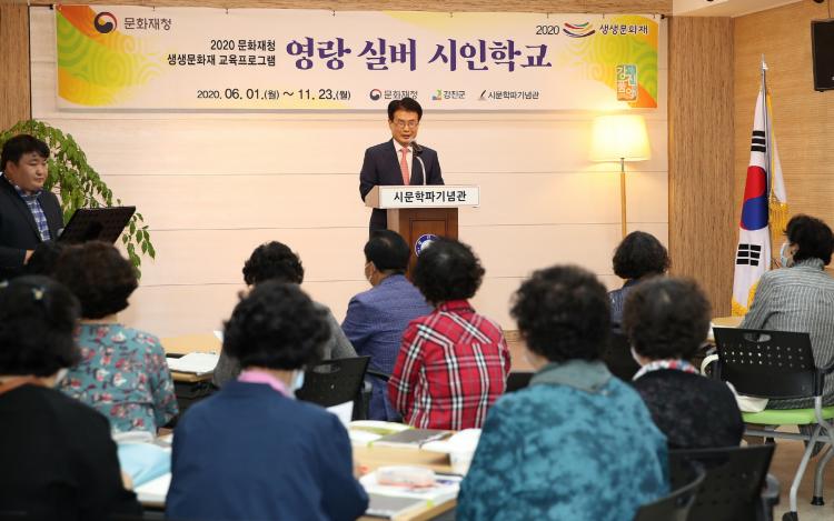 지난해 지역민들로부터 큰 호응을 받은영랑실버시인학교수업 모습.