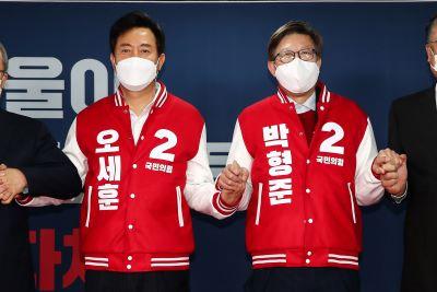원희룡 제주도지사도 "국민의힘 오세훈 후보, 박형준 후보의 승리를 축하드린다"며 "야권단일화는 국민의 명령"이라고 강조했다.