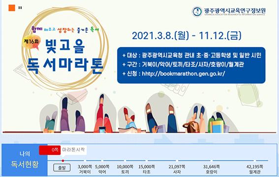 광주교육연구정보원이 8일~11월12일 8개월 동안 관내 초·중·고등학생 및 일반 시민을 대상으로 ‘제16회 빛고을독서마라톤’을 운영한다.