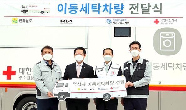 전달식에는 김영록 전남지사, 최준영 기아자동차 대표이사, 박흥석 대한적십자사 광주전남지사 회장 등이 참석했다.