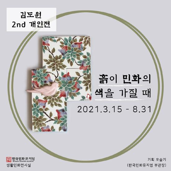 강진군 청자촌에 위치한 한국민화뮤지엄(관장 오석환)에서 3월 15일부터 8월 31일까지 약 5달간 김도원 작가를 초청하여 뮤지엄 2층 생활민화전시실에서 ‘흙이 민화의 색을 가질 때’전을 개최한다. 이번 전시는 민화와 세라믹아트를 접목한 작품 47점을 선보인다.