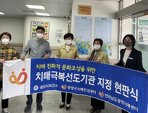 광양시 치매안심센터는 치매 인식 개선 및 치매 친화적인 사회문화를 조성하기 위해 광양시 노인복지관을 치매 극복 선도기관으로 지정하고 현판식을 가졌다고 16일 밝혔다.